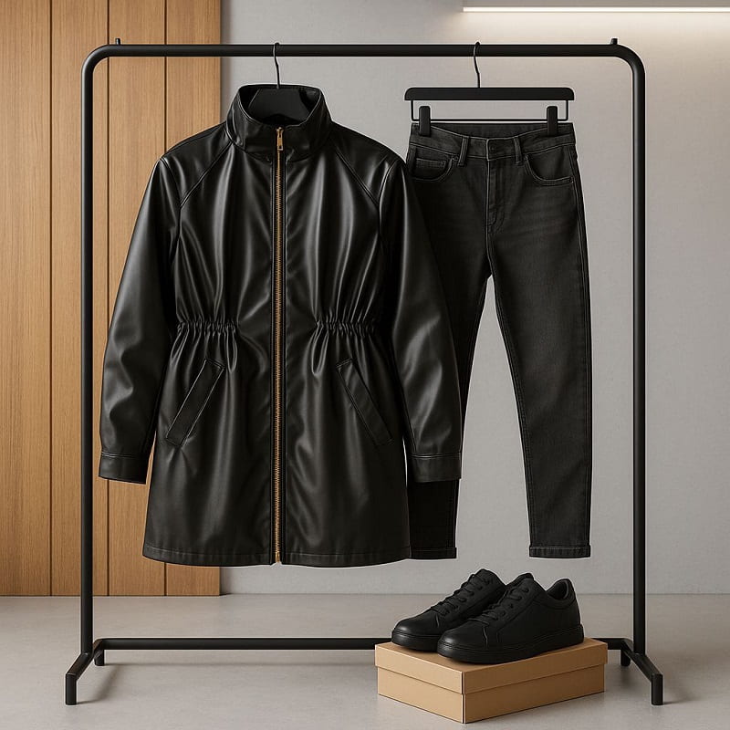 بارونی چرم مشکی زنانه مدل Beti